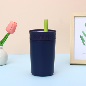 En popüler 2025 özel renkli 12oz çocuklar pipetli bardak dökülme dayanıklı kapak 304 paslanmaz çelik şişe saman ile